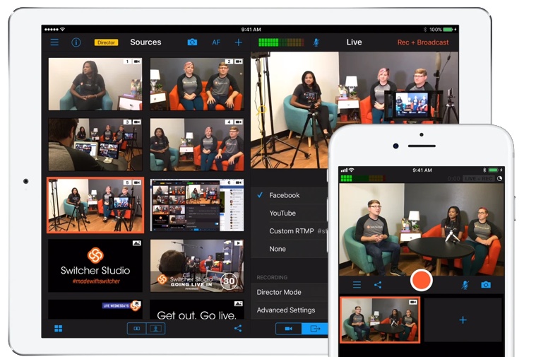 Switcher Studio provides a simple, user-friendly interface and allows users to connect multiple devices such as smartphones, tablets, and cameras to create a professional-looking multi-camera production. It also includes features such as green screen, chroma key, picture-in-picture and both composition and source recording for postproduction.